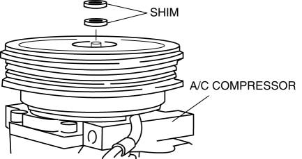 1. Measure the clearance around the entire circumference between the pressure plate and A/C compressor pulley using a thickness gauge.